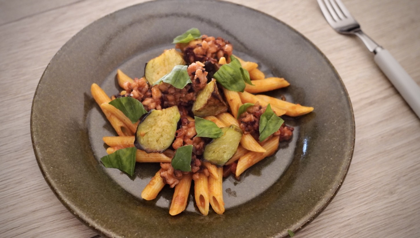 蛸のアラビアータが主役(の茄子とトマトのペンネ)