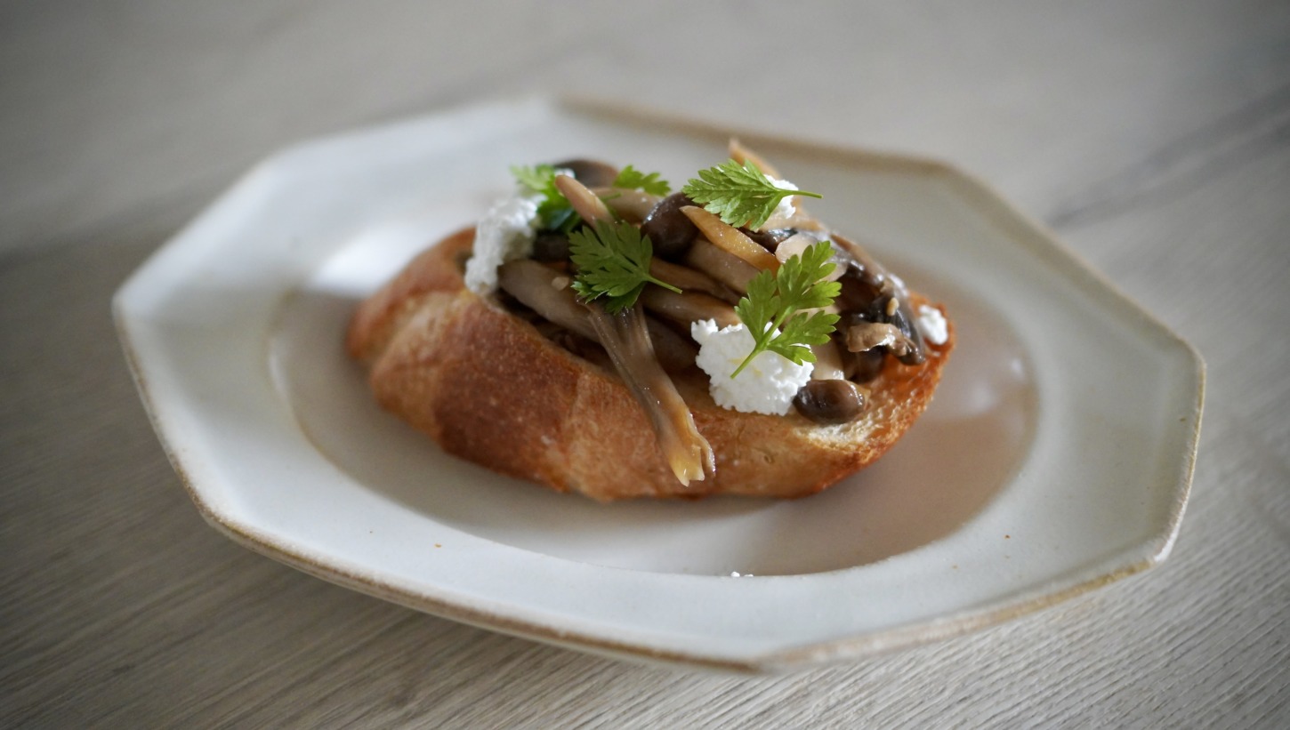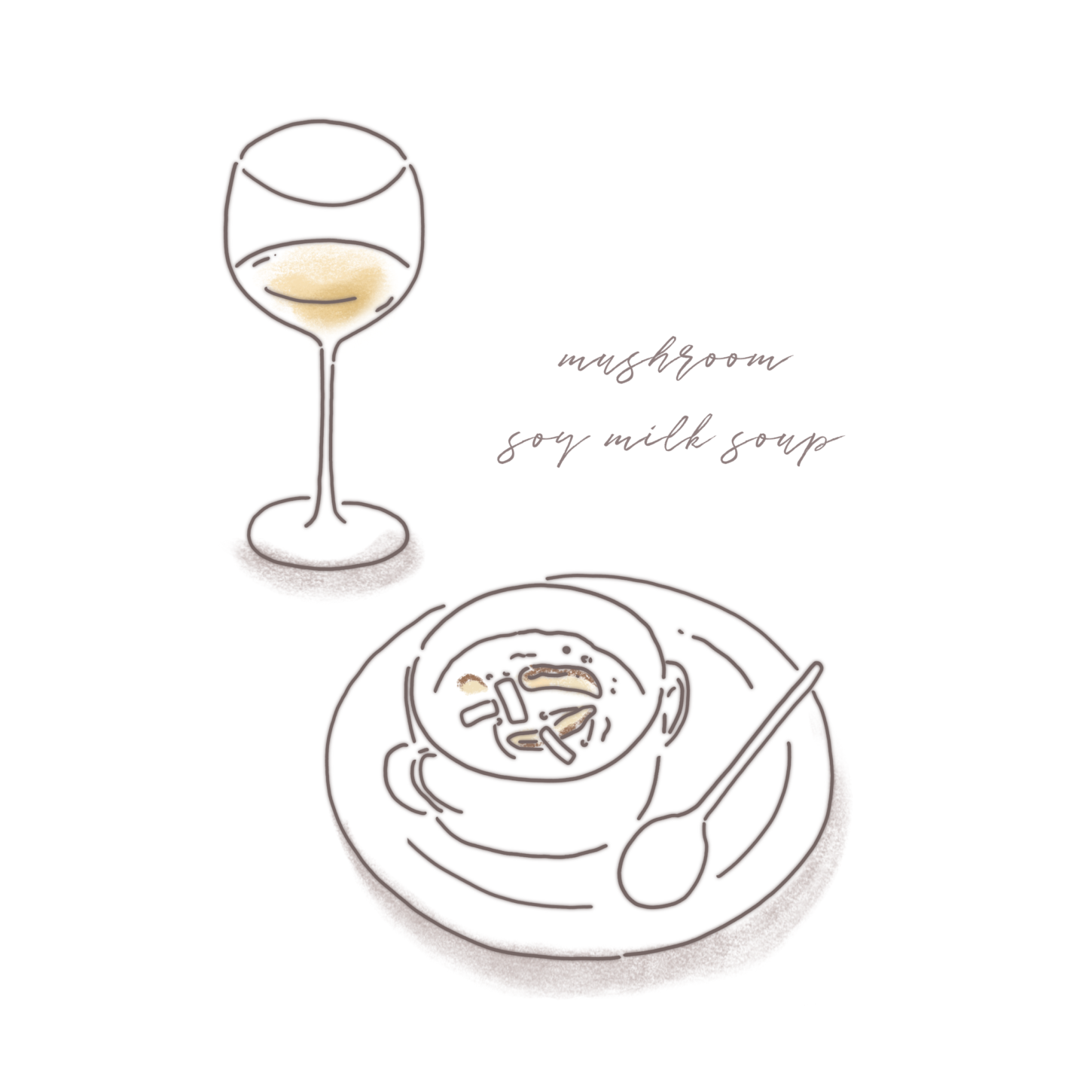 「オレンジワイン」と「きのこと豆乳のあっさり出汁スープ」